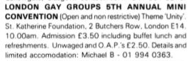 1984 – East London held the London Gay Groups 5th Annual Mini convention.