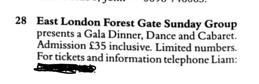 1989 – 28th April – Sunday Forest Gate dinner and gala.