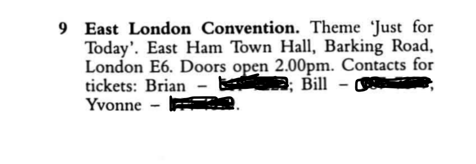 1988 – East London Convention held at East Ham Town Hall, Theme, ‘We Are Responsible’.