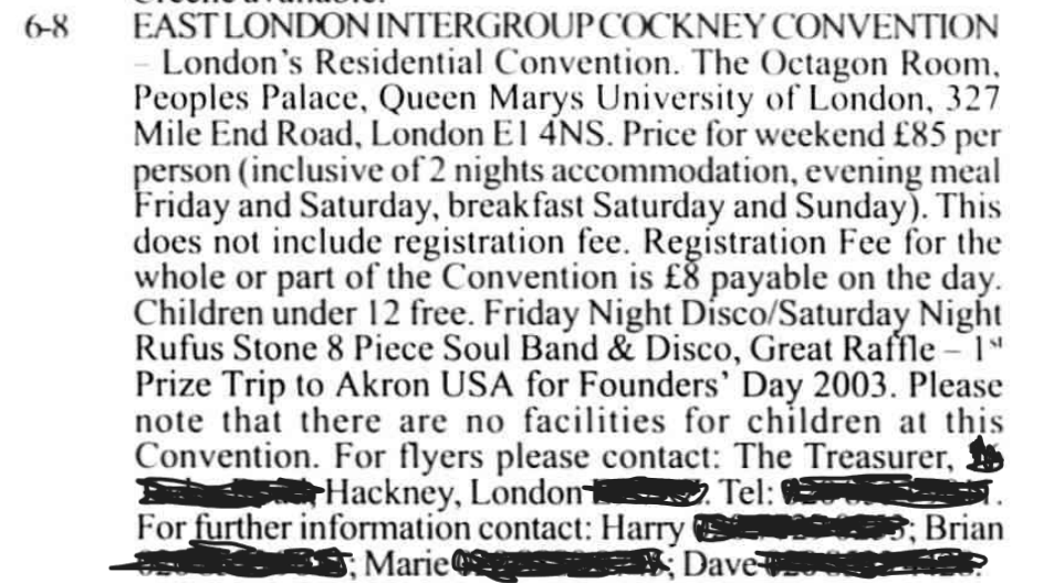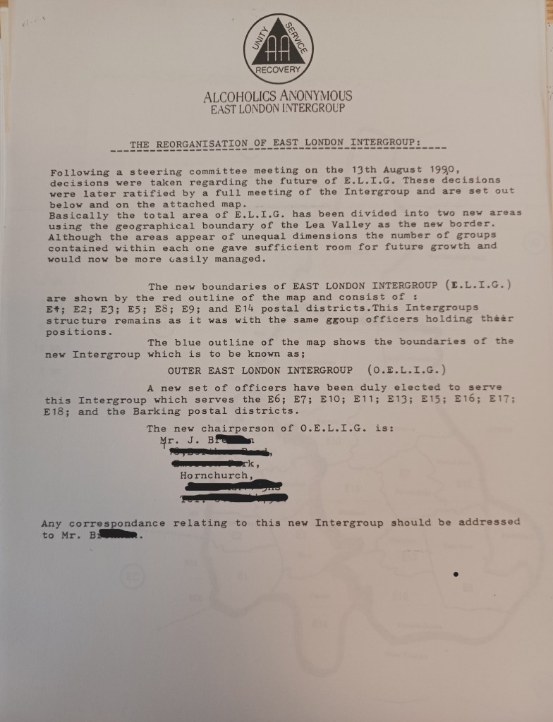 2023 – East London Intergroup held its first Archive Mini Convention – over 220 years of continued sobriety on the top table – have a listen HERE