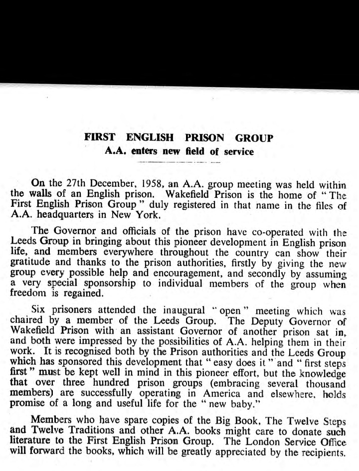 1958 – Not East London – The first English Prison Group began in Wakefield Prison.