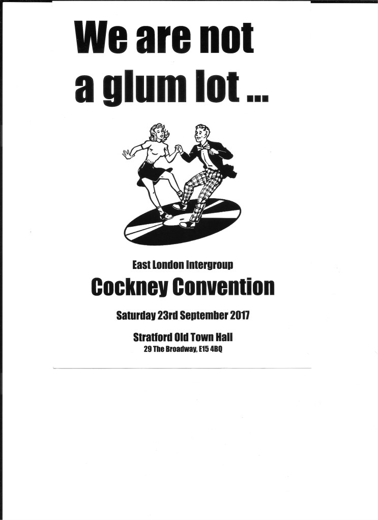 2017 – Cockney Convention at Stratford Town Hall – Theme ‘We Are not a Glum Lot’.