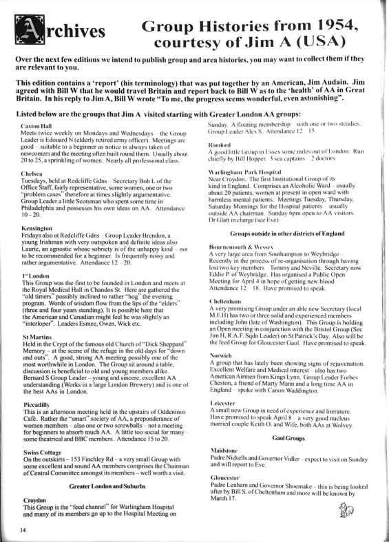 1954 – A travelling American called Jim who would report back to Bill W on the ‘Health’ of meetings this side of the pond.