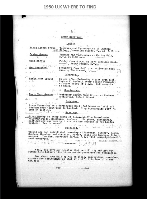 1948 – January of that year, another member wrote to the Grapevine regarding the first meeting held in GB. Sgt Vernon – have a butchers