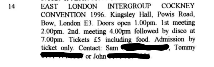 1998 – 12th September – Cockney Convention at Kingsley Hall.
