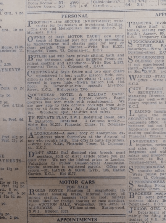 1947 June – ‘Canadian’ Bob , Tony F, Norman and Chris B created an advertisement that appeared in the Financial Times.