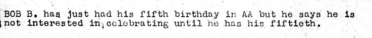 1950 – Canadian Bob celebrated 5 years in recovery. A.A GB put it in the newsletter.