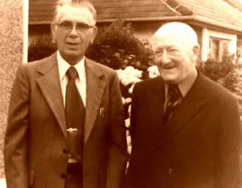 First A.A Meeting in Europe was in Ireland, Dublin in 1946. Conor F had been living in the States and got sober in 1943, he came back to Dublin for a holiday and wanted to get something going, which he did. Below is a pic of Conor F (wearing glasses) and Sackville, Sackville got sober in 1947 and helped grow the fellowship in and around Ireland and also aiding the growth in other parts of England. Conor F moved back to Philadelphia and died in 1993 at 50 years sober. Sackville died in 1979 at 32 years sober.